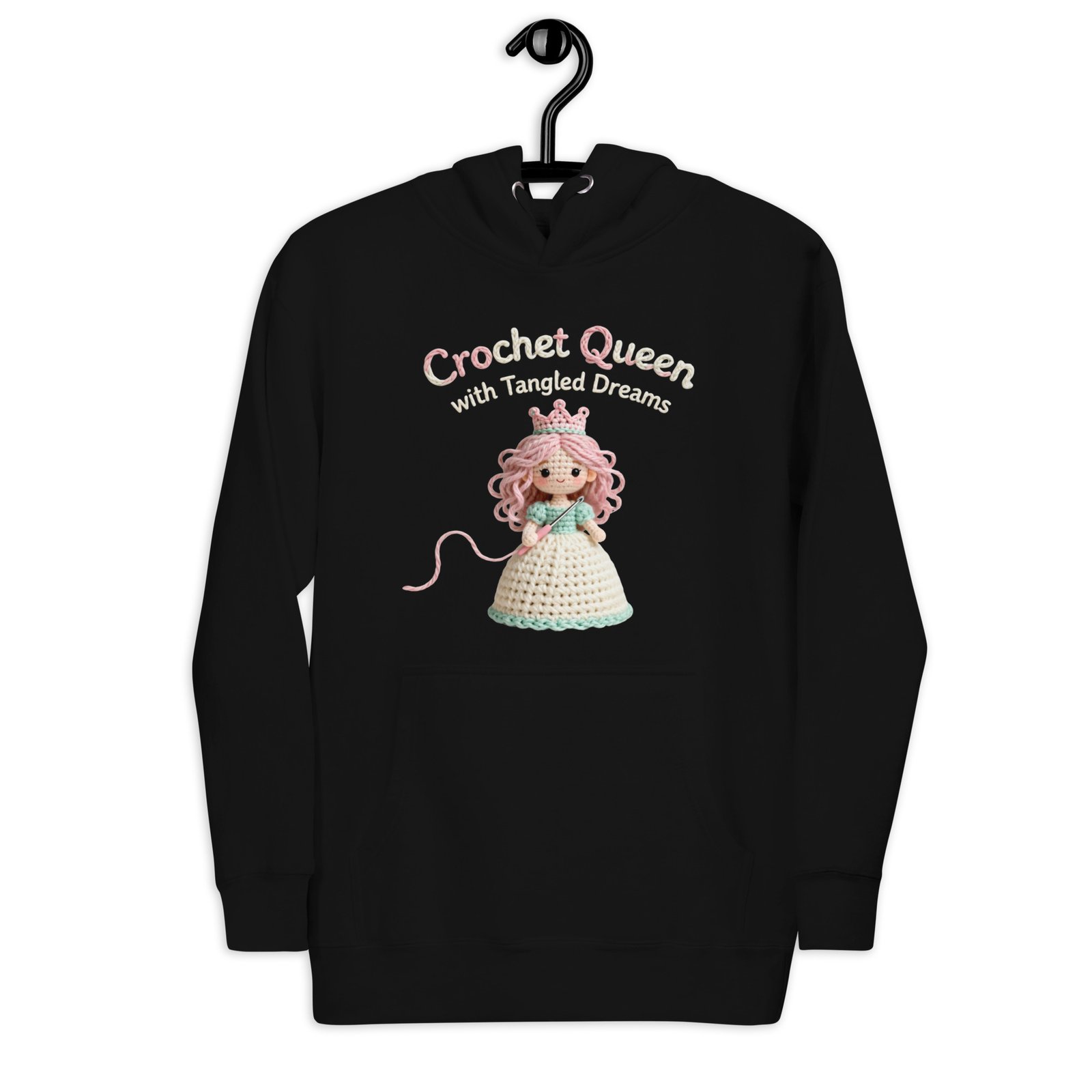 You’re the Crochet Queen with Tangled Dreams—royal, radiant, and absolutely awesome. This hoodie just makes it official.
