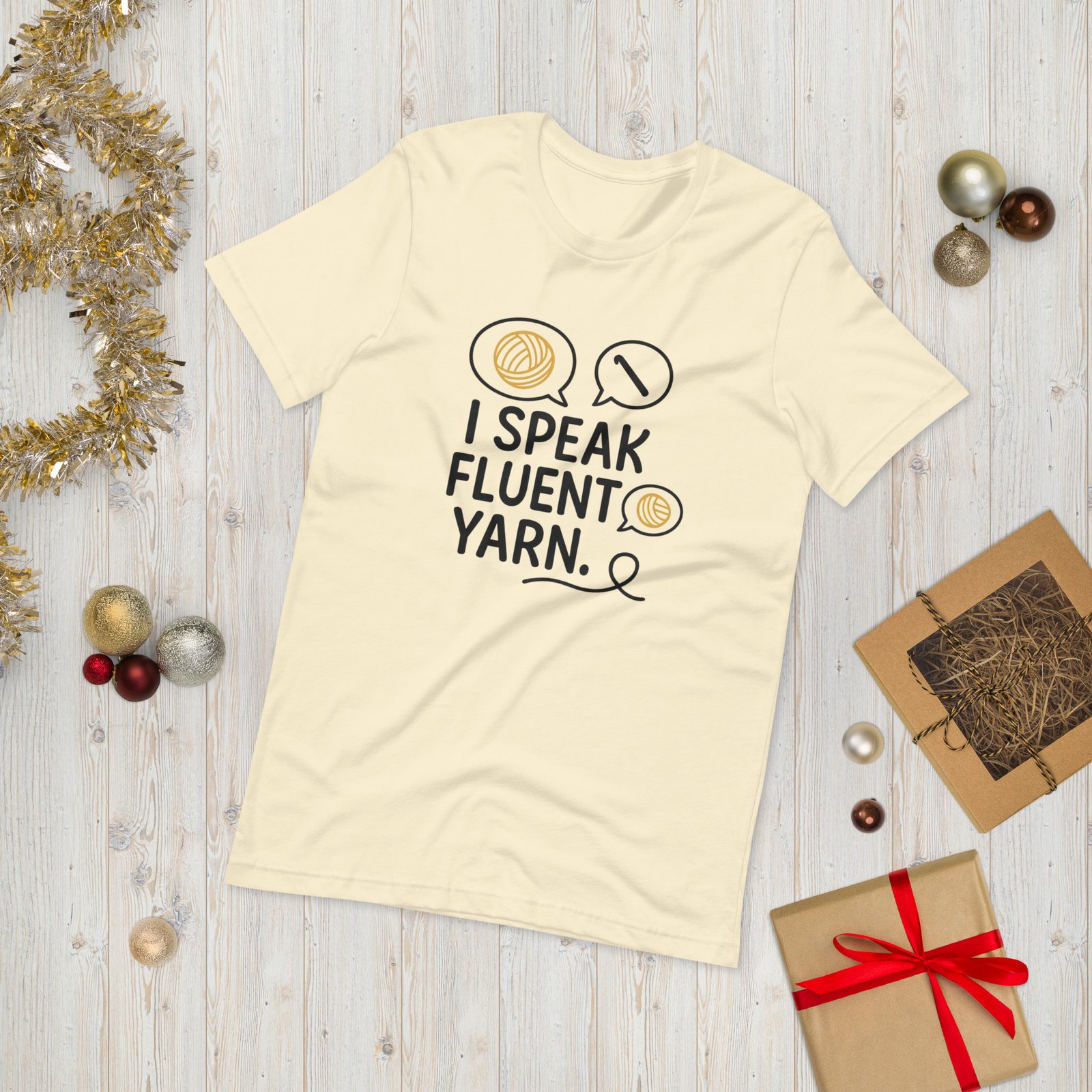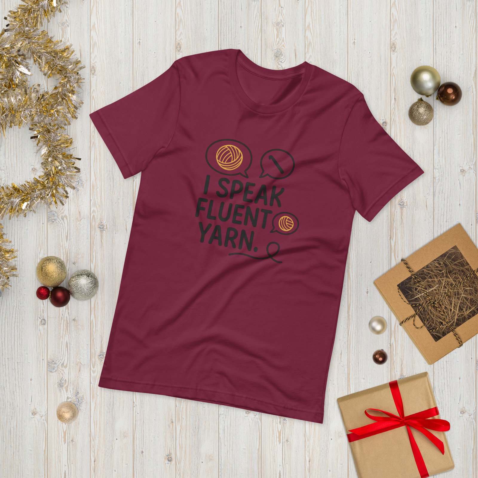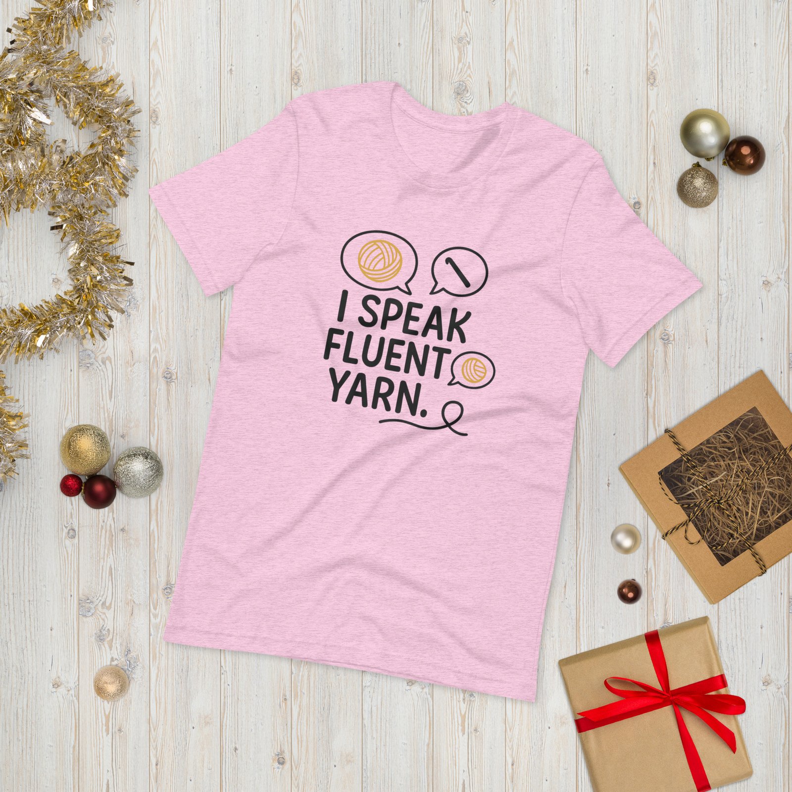 Forget small talk—you’re fluent in skeins, stitches, and dye lots. This “I Speak Fluent Yarn” Unisex T-Shirt is the perfect declaration of your second (or first) language: Yarn!