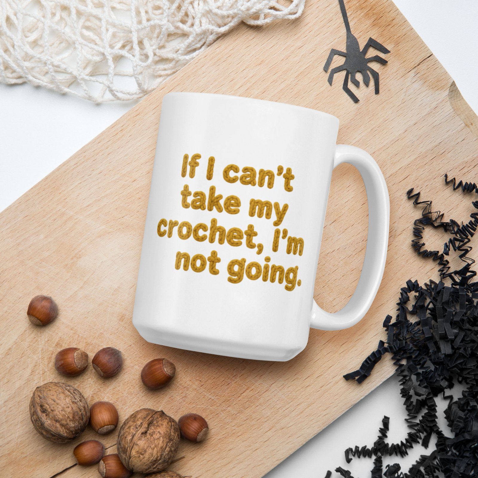 This “If I Can’t Take My Crochet, I’m Not Going” white glossy mug is the perfect silly, fun Christmas companion for yarn-obsessed introverts who would rather be stitching by the tree than making small talk by the punch bowl. Fill it with hot cocoa, peppermint coffee, or mulled cider and let everyone know your non-negotiable holiday policy.